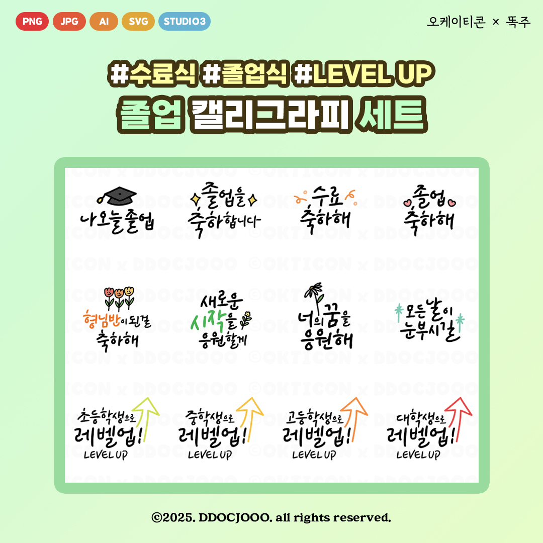 - It can be used commercially after purchasing digital files. - Modification and derivation work can be made as needed, and production is allowed as a secondary creation. - The second creation must be produced together to be sold. ex) Stickers with the icon printed as it is cannot be sold (it is possible to sell the product with a sticker attached). ex) If the icon + secondary creation (textbook addition, ribbon, balloon, clothing, package, design elements, etc.) are produced together, it can be sold. ex) Toppers that do not produce secondary creations together and use only icons cannot be sold (it can be given as a service). -Emojis (stickers) such as Kakao Talk and Naver cannot be produced. - You cannot use it for company logos, business cards, etc. - It can be used for classes in the offline one-day class, but icon files cannot be provided to students. - Works made by students in the one-day class cannot be sold separately.(Personal collection O) - Legal action may be taken against copyright infringement, illegal copying, redistribution, theft, transfer, or resale. - The product photo produced using the image you purchased can be used as an OKTicon marketing image. - It's a digital file, so it's hard to get a refund after downloading the product. |